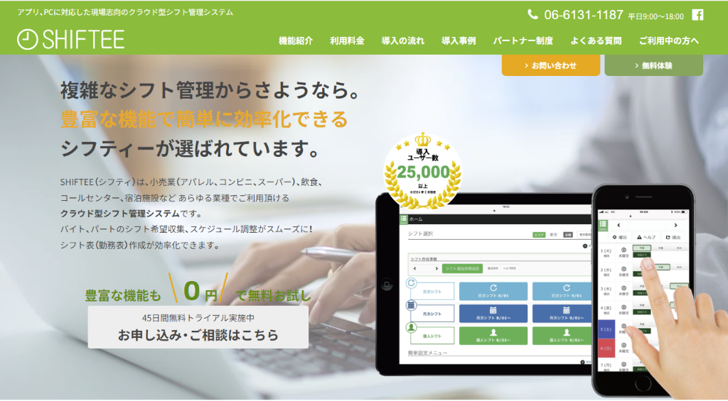 各業種の特性を考慮して開発された、クラウド型シフト管理システムです。システムによって平等なシフト作成が可能なため、スタッフの満足度向上や離職低下に貢献します。シフト表はAIが自動で最短1分で作成ができるため、大幅な業務効率化も可能です。また、店舗や業種に合わせて800を超える標準機能を有しているのも選ばれる理由のひとつです。